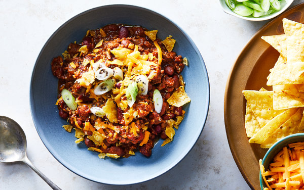 When ready to serve, stir in the Worcestershire sauce. If the chili is too thick, stir in a bit of water until the texture is to your liking. Season to taste with salt. Serve in bowls and pass the toppings at the table.