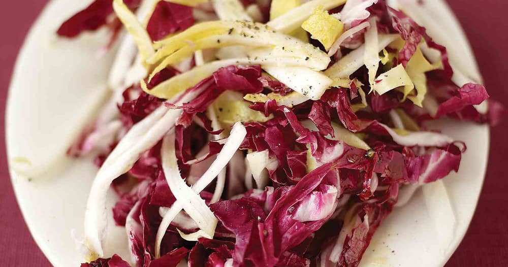 I make this all the time, and I'm amazed at how frequently I find both radicchio and Belgian endive at grocery stores, especially considering how few checkout people know what Belgian endive is, and how they can never, ever find the PLU. Its 4543. Hello new boss of the supermarket. It's also sometimes called Witloof chicory, or just chicory in their cheat sheets.