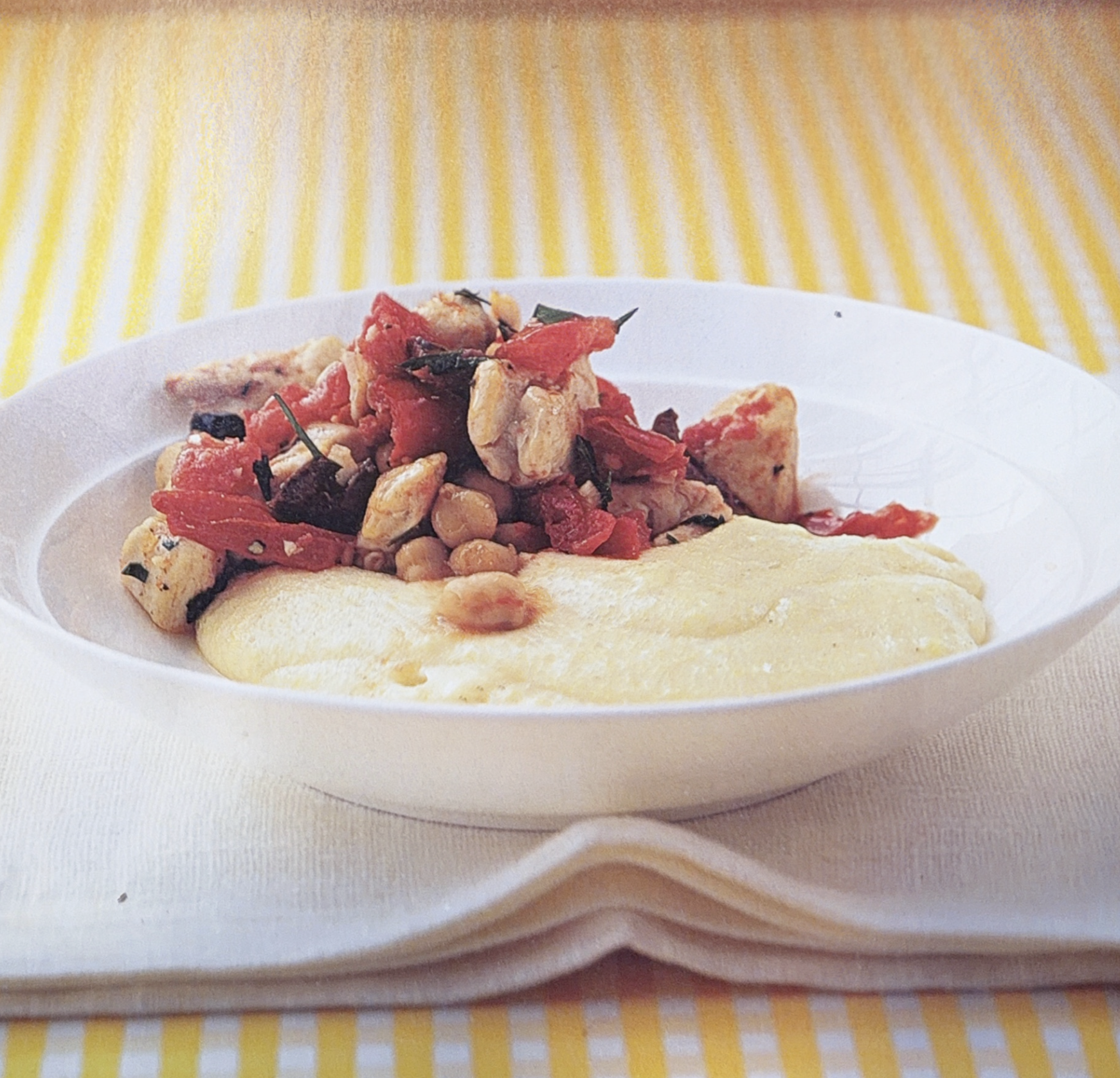 Here's my polenta recipe: bring two cups of water and one cup whole milk (or 3 cups of water) to close to a boil, and gently whisk in 1 cup of polenta. I like Bobs Red Mill. Turn heat down to lowish and stir frequently for 5 or so minutes until it has the consistency of loose mashed potatoes. Stir in 1/4 cup of the plain ol' Kraft parm cheese, and a tablespoon of butter. Put a lid on it and take it off heat until ready to serve. You can make the polenta more stew-like by going to 4 cups of water/milk.